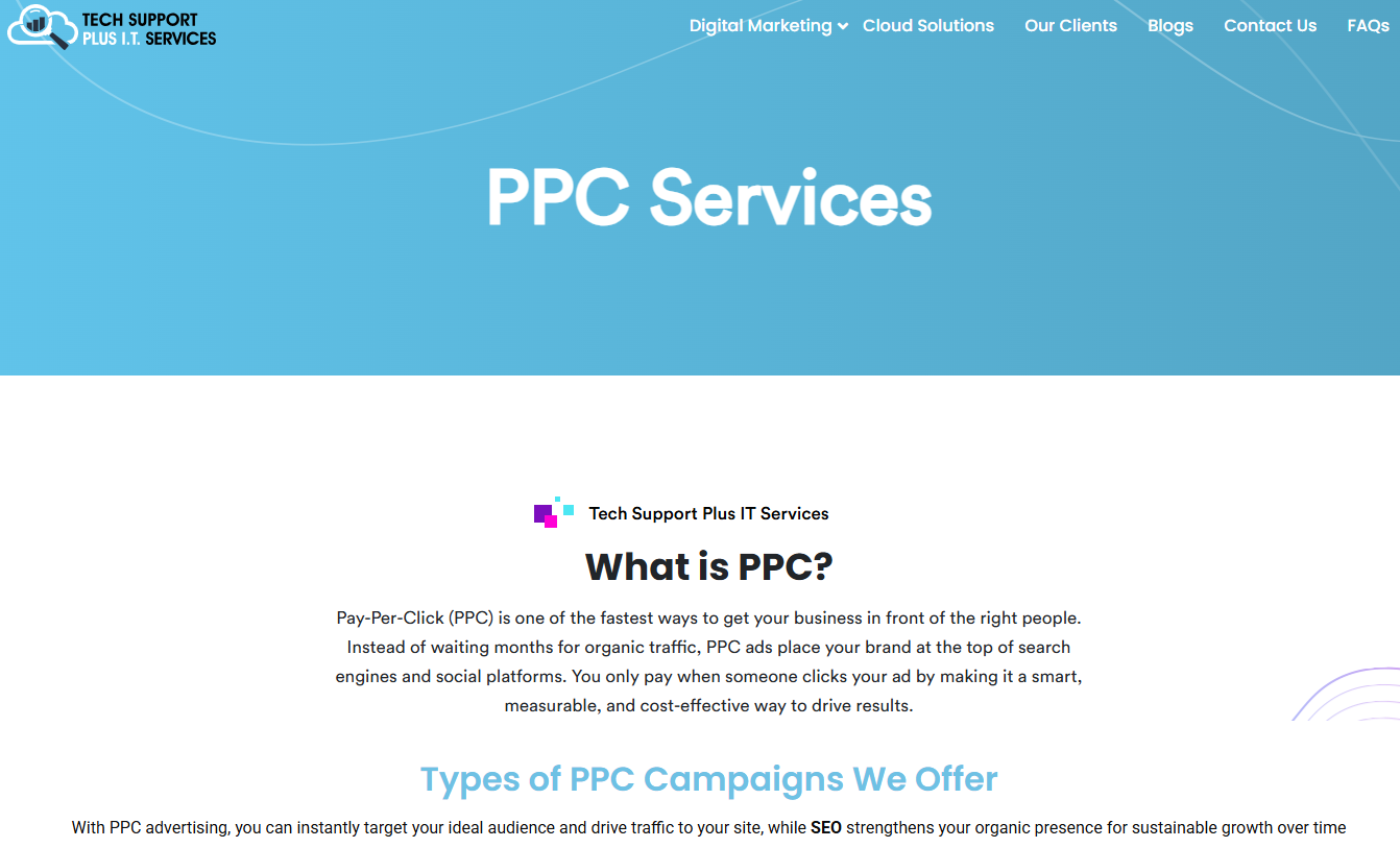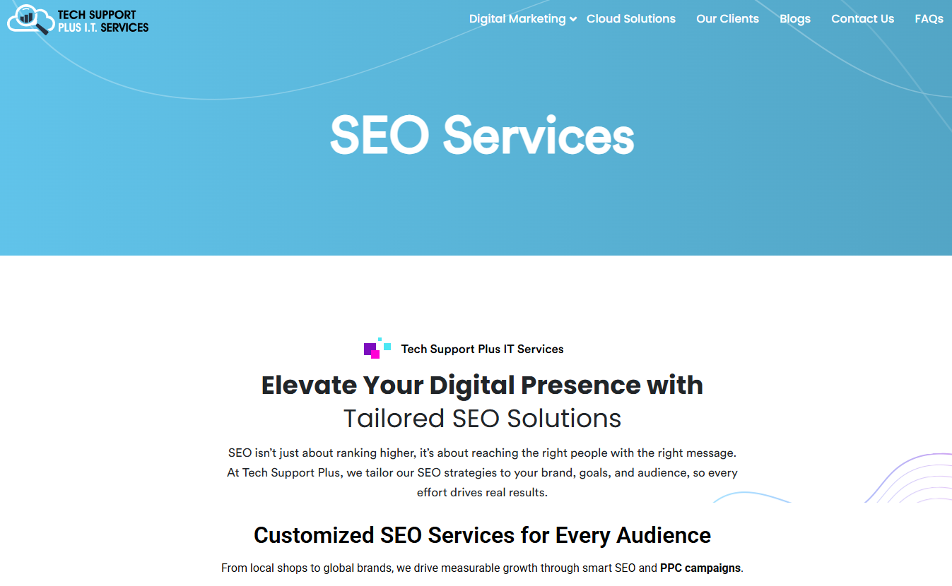 Techsupportplusit.com provides expert Digital Marketing Services and Cloud Solutions to help businesses grow smarter, faster, and stronger. From SEO and PPC to reliable cloud strategies, we deliver tailored solutions that boost visibility, performance, and long-term success.